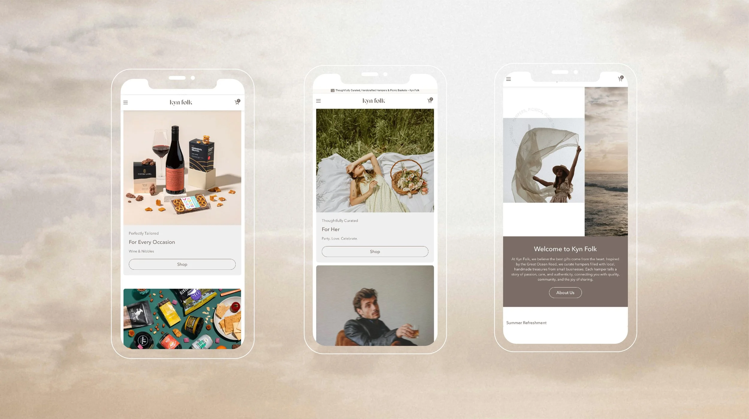 Kyn Folk was born from a love of travel and a deep appreciation for local food, culture and community along Victoria’s Great Ocean Road. Formerly operating as Surf Coast Picnic Co, the business had outgrown its original name and identity.