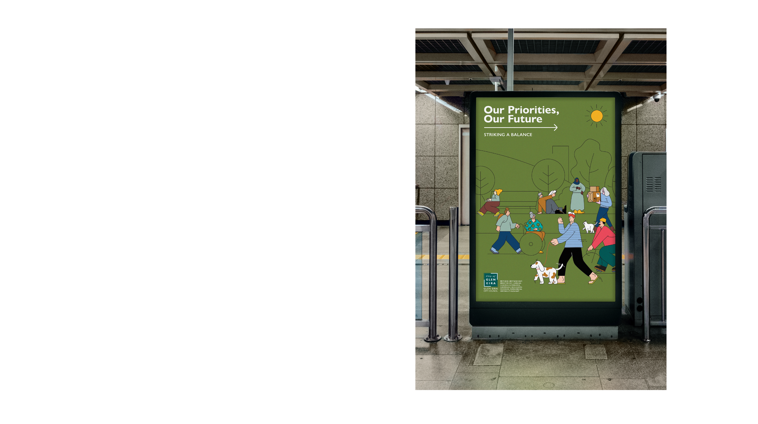 The visual language was designed to signal openness and inclusion, while still carrying the weight of long-term civic responsibility. This resulted in a bold, adaptable campaign system that could operate consistently across print, digital, outdoor and in-person engagement environments.